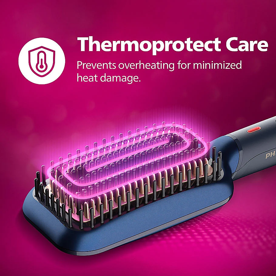 Hair Straightening Brush- BHH885/10 (New) ThermoProtect Technology, Ionic care, Argan Oil Infusion & Extra Large Brush, 50 Watts, Black